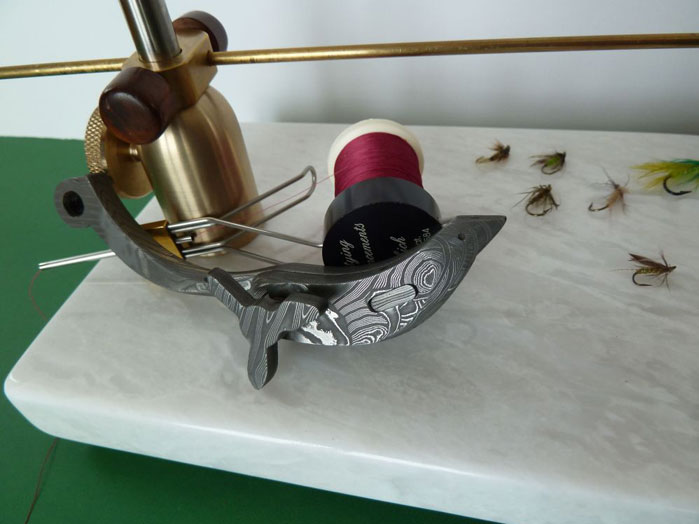 My background is in mechanical engineering and I have a passion for tool making. I was convinced I could make a better vise and made several prototypes employing high quality materials, which resulted in vises with a higher degree of jaw hardness, better finish and longer life. One of the last vises I made was based on the old Regal vise adapted to include rotary jaws, an articulated clevis as well as a modified stem profile. I used this vise for over thirty years as it met my needs, holding the hook firmly; basically what I expected a vise to do (see “Faruk Of The North”).