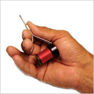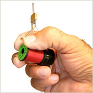 05. The Ekich Bobbin is designed to ergonomically fit both left and right handed tyers. Utilizing the grip shown in the photo to the right enables the use of the ring finger and pinky to palm the free end of spool for tension control, and use of the thumb and index finger for other tying work if so desired.