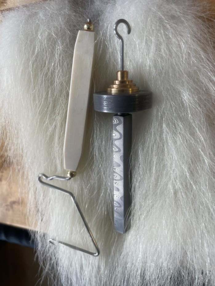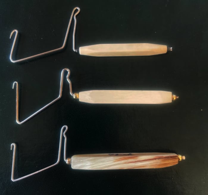 These whip finisher handles are made with either mammoth ivory (top two whip finishers in the first pic below), or muskox antler (bottom whip finisher in the first pic below)